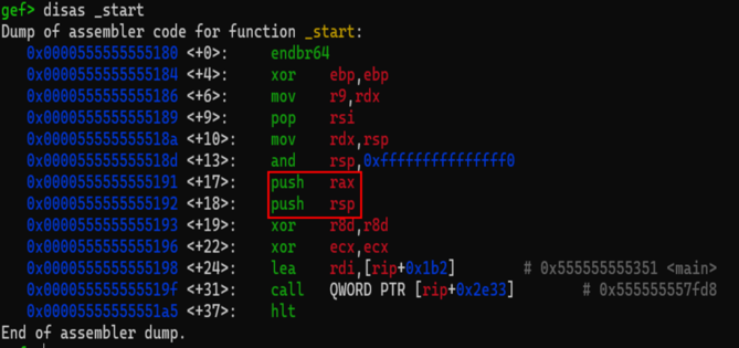 start의 경우 호출 시 rax레지스터 값을 push한 뒤 __libc_start_main함수를 호출하며 다시 main으로 돌아가고 재사용할 ROP chain은 보존이 가능하고 다음 검사에 필요한 값들(에측값)만 변경해주면 ASLR bypass가 한번만 되면 최소 한개의 byte 값을 알아낼 수 있습니다.