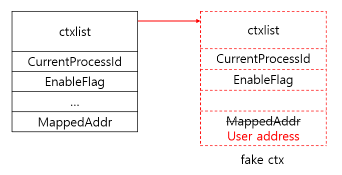 AAW는 face ctx를 만들고 MappedAddr필드를 변경하며 4096(0x1000)byte AAW/R이 가능하여 이걸 통해